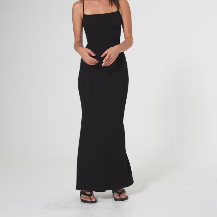 This full-length slip dress is sewn from a luxuriously soft ribbed bamboo knit fabric that features excellent flexibility and fit.