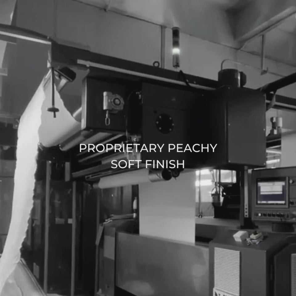 Experience the luxuriously smooth and buttery feel of our exclusive knit jersey, created through a proprietary water-brushing technique that gives it a subtle peach surface.